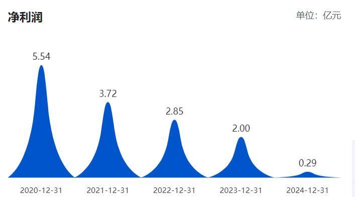 巨潮资讯的相关数据也佐证了这一点,从趋势上看,自2020年以来,东风股份在年度净利上呈现明显的加速下滑趋势,公司2024年净利仅为0.29亿元,与其2020年净利润5.4亿元的阶段高点比较,仅为后者的8.2%。
