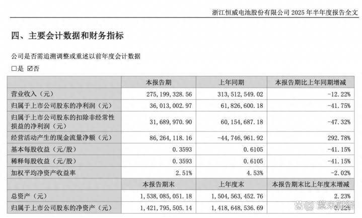 浙江恒威(301222)发布2025年半年报,实现营业收入2.75亿元,较上年同期下降12.22%;归属于上市公司股东的净利润3601.3万元,较上年同期下降41.75%。