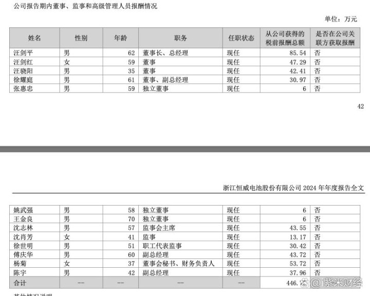 2024年年报显示,公司董事、监事和高级管理人员2024年报酬总额446.75万元。董事长、总经理汪剑平2024年从公司获得的税前报酬总额为85.54万元。副总经理傅庆华2024年从公司获得的税前报酬总额为43.72万元,董事会秘书、财务负责人杨菊2024年从公司获得的税前报酬总额为53.72万元,以上人员均未在公司关联方获取报酬。