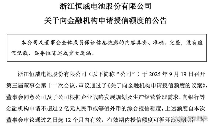 公司于2025年9月19日召开第三届董事会第十二次会议审议通过了《关于向金融机构申请授信额度的议案》,董事会同意公司及子公司根据企业战略发展规划及生产经营管理需求,向银行等金融机构申请不超过2亿元人民币或等值外币的综合授信额度。